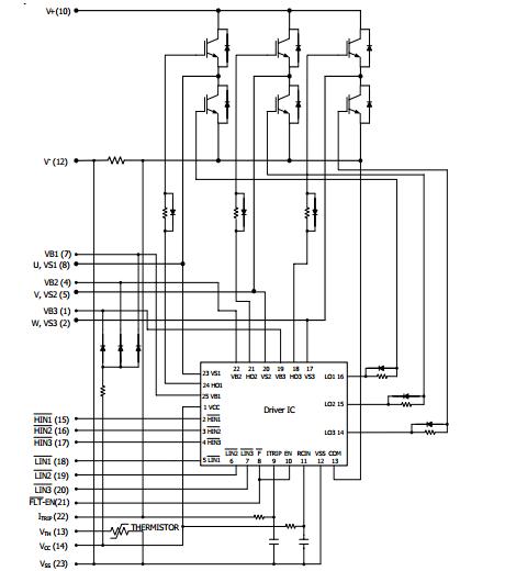 IRAMS10UP60B-2 features: (1)Internal Shunt Resistor; (2)Integrated Gate Drivers and Bootstrap Diodes; (3)Temperature Monitor; (4)Fully Isolated Package; (5)Low VCE(on) Non Punch Through IGBT Technology; (6)Undervoltage lockout for all channels; (7)Matched propagation delay for all channels; (8)Schmitt-triggered input logic; (9)Cross-conduction prevention logic; (10)Lower di/dt gate driver for better noise immunity.