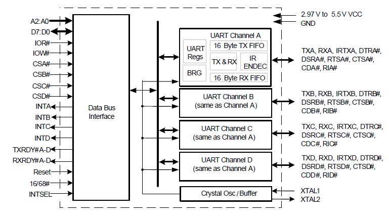 ![]() UART Interface IC QUAD UART W/16 BYTE FIFO |